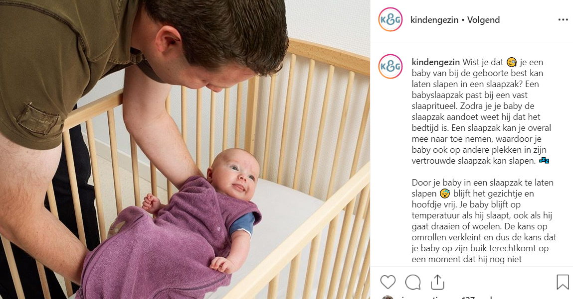 baby draait in bed met slaapzak