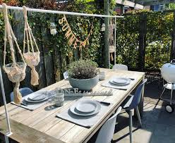 eettafel tuin. tafelklem tuintafel tuin wit en grijs landelijke tuindecoratie tuin tuintafels plantendecor